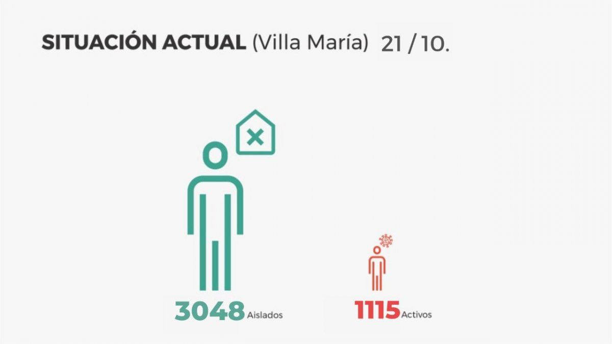 Villa María posee un acumulado de casos de Coronavirus de 2.982, desde marzo. Las personas que transitaron la enfermedad y obtuvieron su alta definitiva, fueron 1819.