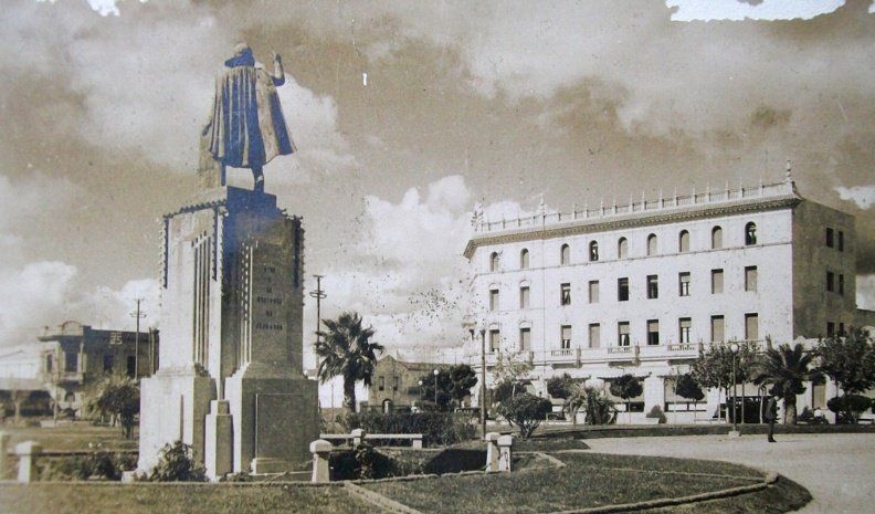 Hace unos días, en unas cajas donde guardo los papeles que tienen que ver con la historia de la ciudad, recobré una vieja fotografía que supe encontrar en la calle. Se trata de una postal “made in Villa María” cuyo motivo es la Plaza Independencia. La imagen fue tomada, curiosamente, con Rivadavia de espaldas y su inmensa capa de vampiro petrificada de toda ondulación posible; saludando a la parte norte de ciudad y al noreste de su castillo; el por entonces flamante Palace Hotel.