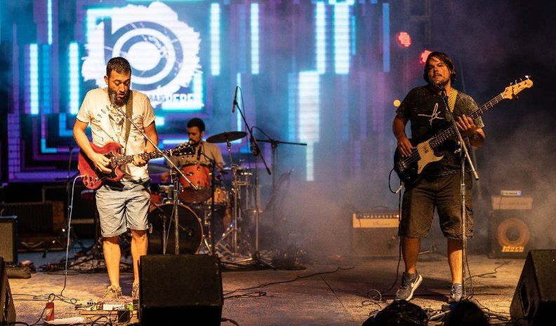 El power trío de rock conformado por batería, bajo, guitarra eléctrica, voz principal y coro amplió el formato hacia una “banda más grande” en algunos temas. Se sumaron como invitados músicos locales y amigos de la formación.
