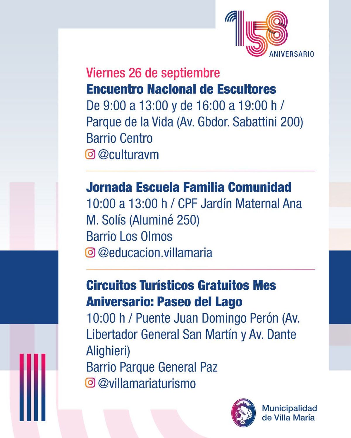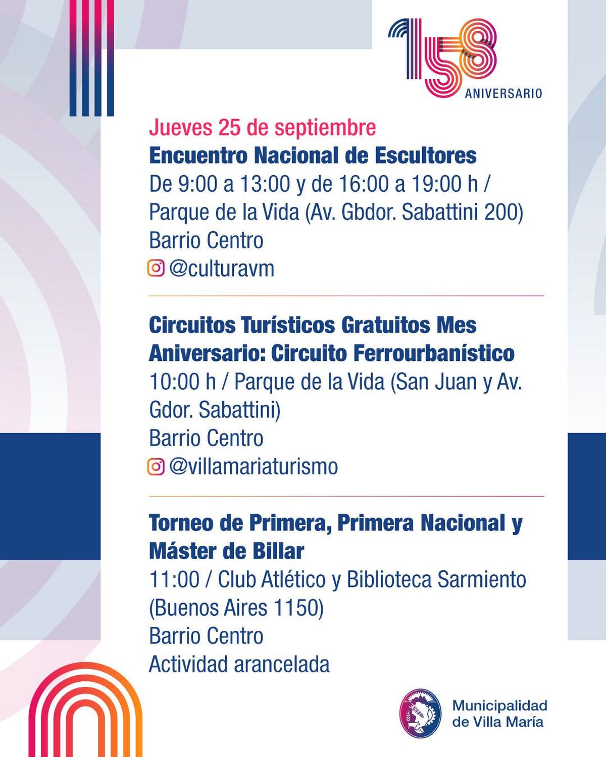 Villa María celebra su 158° aniversario con una amplia agenda de actividades culturales y comunitarias