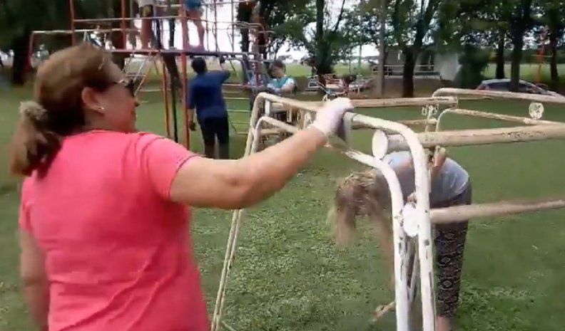 Las voluntarias se juntan todos los viernes y desde allí surgió la iniciativa de dejar en buenas condiciones el lugar donde sus hijos y nietos pasan los fines de semana.