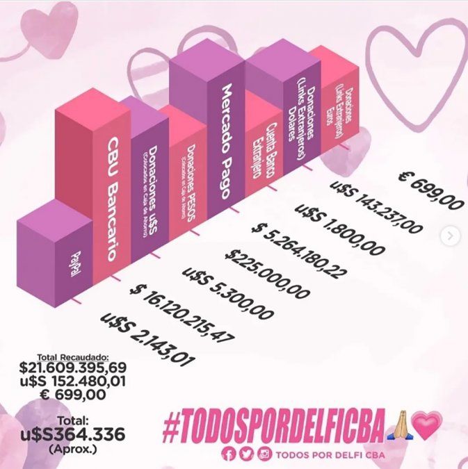 Por ese motivo es que, finalizando julio, familiares y amigos emprendieron la campaña solidaria con un objetivo que se veía lejano; pero que ahora es una realidad. “Todos por Delfi”, lema de la iniciativa, se hizo escuchar y ganó popularidad velozmente. Famosos de todo el país, participaron compartiendo la información de la campaña con sus seguidores.