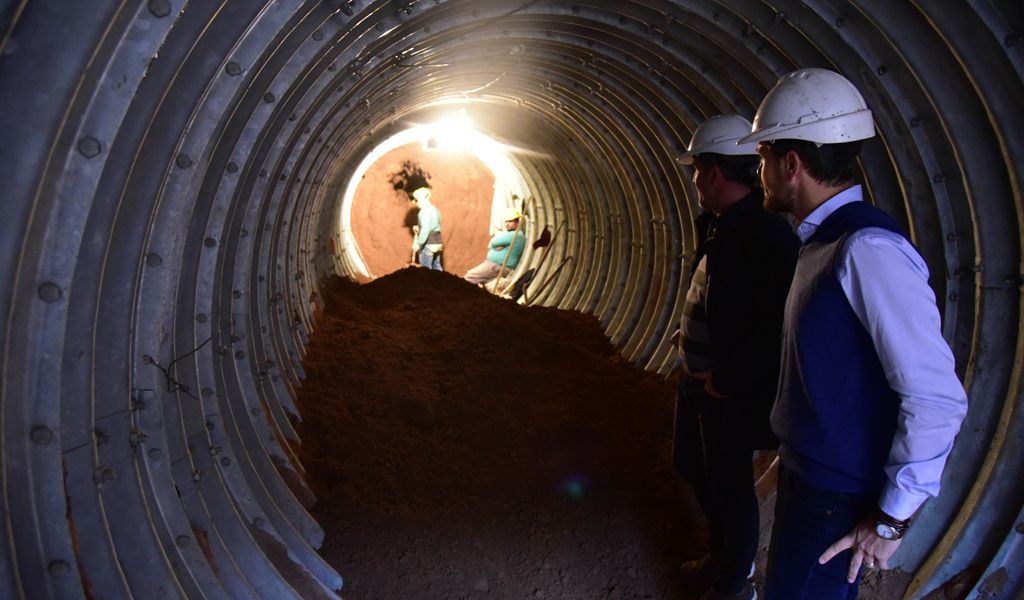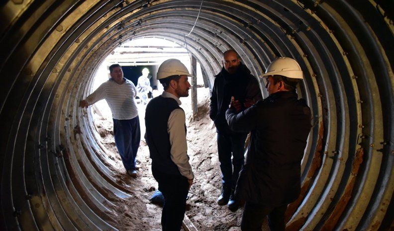 Y contó cómo es ese mecanismo. “Se baja hasta la cota en la que va colocado el túnel, hay un sistema que se conforma por tres tramos de 50 centímetros de ancho, con esto se forma un círculo, se arma, se avanza otros 50 centímetros y así se va armando el tubo por el que va a pasar el desagüe”, describió.