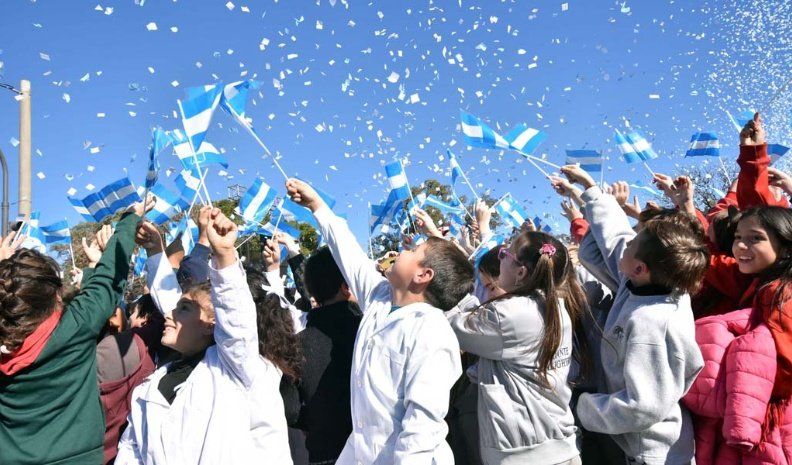 Estudiantes de cuarto grado de las escuelas locales prometieron ayer lealtad a la enseña patria, en la previa al Día de la Bandera que se conmemora hoy. Fue con la enseña celeste y blanca en alto, en un acto que se realizó frente al monumento que recuerda a Manuel Belgrano.