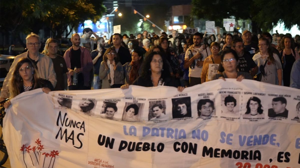 La marcha partió desde Plaza Independencia a las 20.30 horas y recorrió las calles céntricas de la ciudad hasta llegar al Reloj del Sol, ubicado en la costanera. Durante el trayecto, los participantes entonaron consignas alusivas a la memoria, la verdad y la justicia, y portaron pancartas con fotos de los desaparecidos y leyendas que repudiaban el terrorismo de Estado.