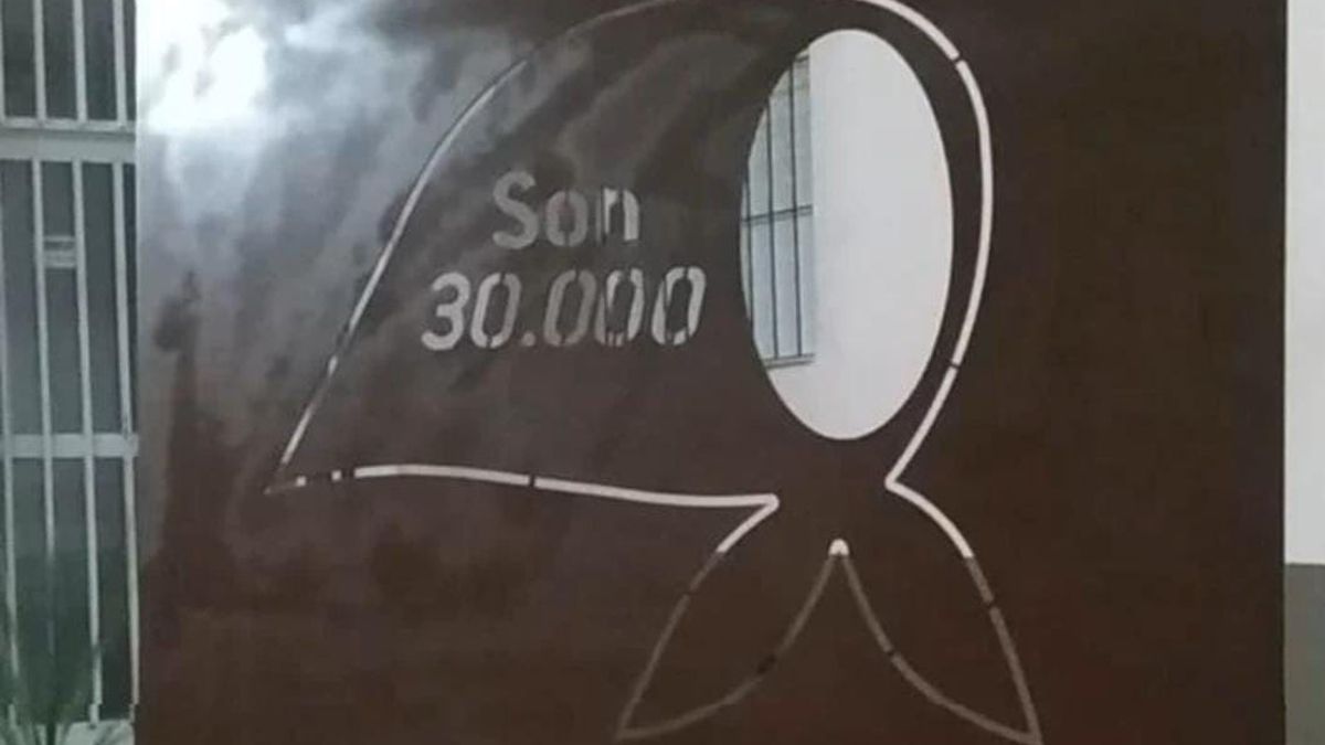 Según se destacó, la pieza, que fue colocada en la entrada del edificio gremial de calle Santa Fe, en el que se lee la inscripción “Son 30.000. Memoria, Verdad y Justicia”, fue rescatada de un intento de descarte.