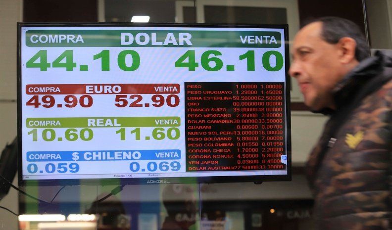Según un promedio realizado por la autoridad monetaria, la divisa terminó a $ 43,80 para la punta compradora y a $ 46,01 para la vendedora, lo cual representó un incremento de 66 centavos frente al cierre anterior.
