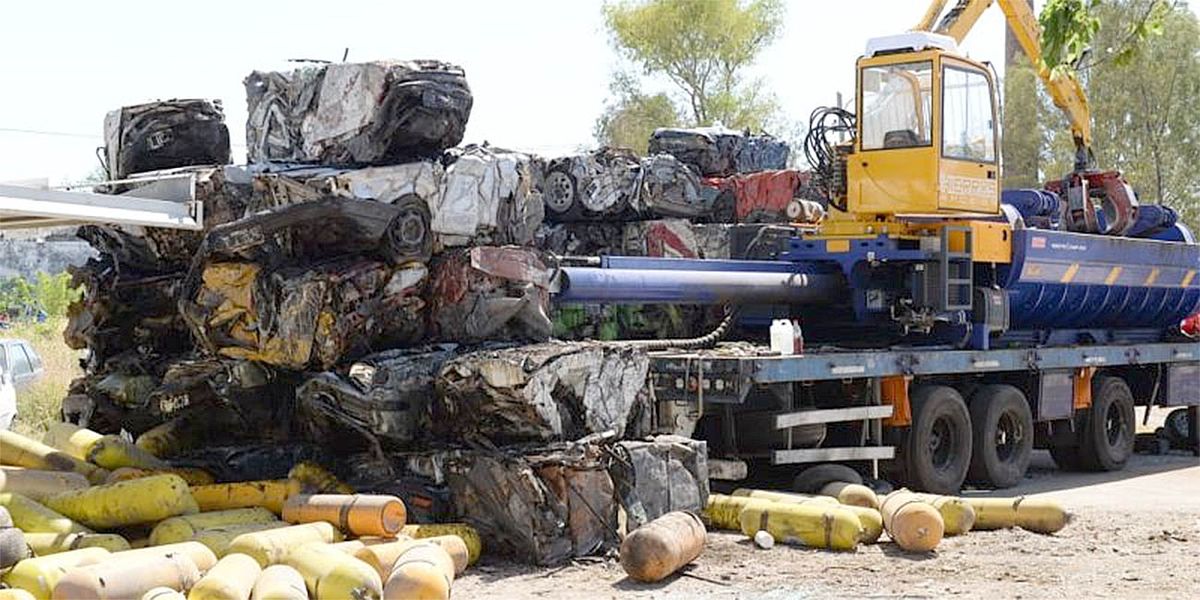 La compactación es realizada por una prensa compactadora marca ORCA mod. 5050G, de origen italiano, propiedad de la empresa Hierros Arce S.A. La máquina de gran porte tiene capacidad para procesar entre 4 y 5 vehículos por hora, en jornadas laborales de entre 8 y 10 horas. Es decir que cada día son compactados entre 40 y 50 vehículos aproximadamente. Finalizado el procedimiento, cada vehículo queda reducido a un cubo de 0.5 metros cúbicos. El primer paso es preparar el vehículo para su compactación, luego de la verificación correspondiente. Antes de ser compactadas las unidades se les extraen baterías (residuos Peligros) y los tubos de GNC (se inutilizan con un corte los mismos). Realizado este paso, desde la máquina baja una pluma con una garra que toma el vehículo y lo deposita en la caja de carga de unos 1730 mm de ancho por 5250 mm de largo, estanca.