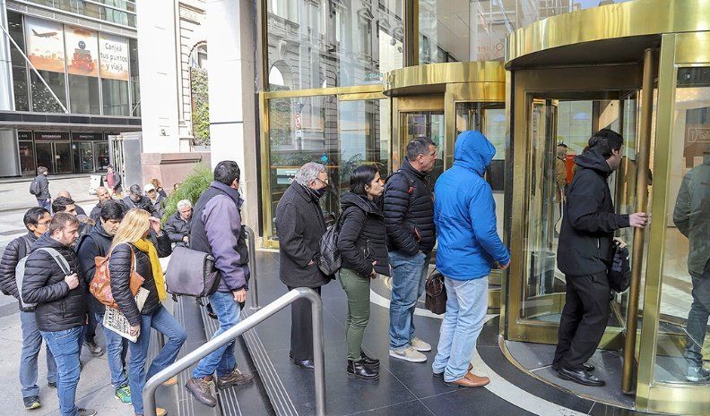 Largas filas se formaron ayer frente a distintos bancos del centro porteño para poder retirar ahorros en dólares, luego de que el Gobierno dispusiera restricciones cambiarias para lidiar con la crisis financiera que golpea al país, lo que provocó una caída de US$ 954 millones en las reservas.