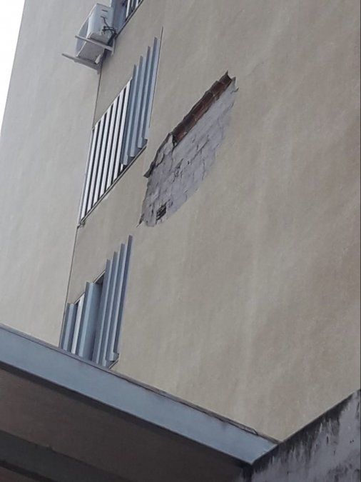 Como consecuencia, detalló que además de caerse el revoque, se dañó gravemente la mampostería. Como si fuera poco, ratificó que en el tercer piso la pared se movió 2 centímetros generando una grieta donde ingresa el aire desde el exterior.