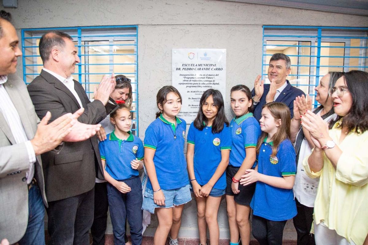 El viceintendente Daniel Passerini, junto con el secretario de Educación, Horacio Ferreyra, y demás funcionarios municipales inauguraron el aula 40 en la Escuela Pedro Carande Carro, de barrio Centro América.