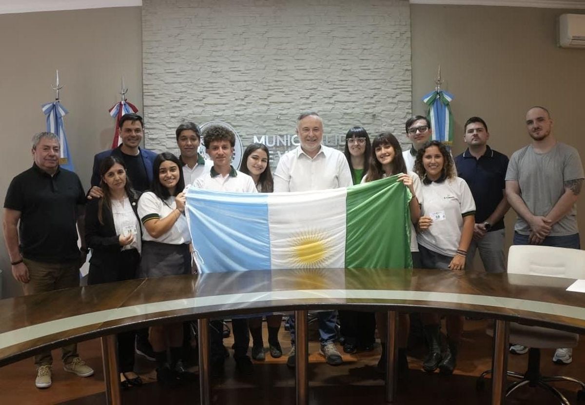 El intendente Eduardo Accastello recibió a estudiantes de cuarto año de la escuela “El Caminante”, quienes investigaron la problemática del ferrocarril en Villa María para la Feria de Ciencias 2025. La directora del nivel medio, Paola Cesano, acompañó al grupo durante la presentación.