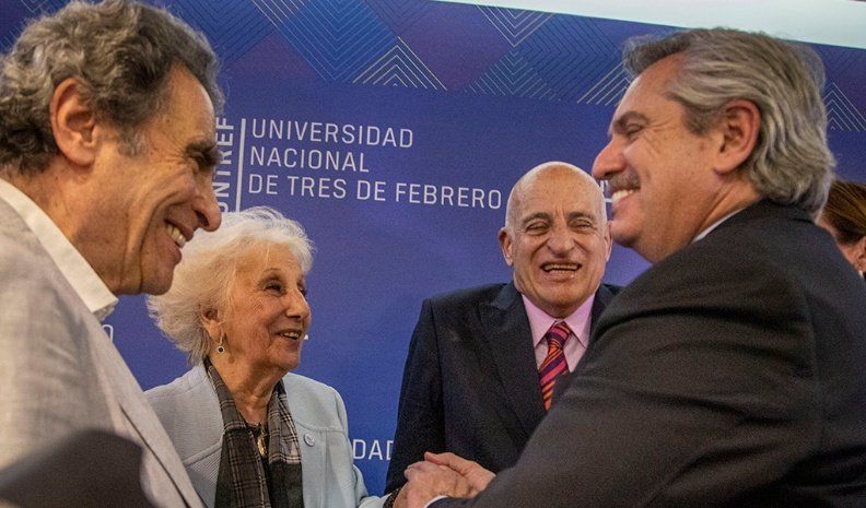 Junto con la presidenta de Abuelas de Plaza de Mayo, Alberto Fernández, en su primera aparición pública tras el cierre de campaña, concitó las cámaras, selfies y entrevistas en el rectorado de la Untref. "¡La homenajeada es ella!", alcanzó a exclamar Fernández entre las fotos del ingreso. "Sólo puedo decir que vengo a acompañar a Estela. Las Abuelas y las Madres son seres enormes", se limitó a decir recordando la veda.