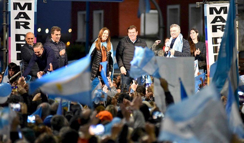 Miles de seguidores de Juntos por el Cambio siguieron la ceremonia en la avenida Luro y la Costanera, donde estuvieron también el candidato a vicepresidente, Miguel Ángel Pichetto, y a intendente de la ciudad balnearia, Guillermo Montenegro, como también los postulantes a diputados Cristian Ritondo y María Luján Rey.
