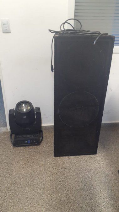 "Efectivos de la Policía se constituyeron en calle Victorino de la Plaza al 3200, donde una mujer hace entrega de un parlante marca SKP Pro Audio, una luz robótica marca Beam 200 y un alargue de 30 metros, elementos que habrían sido sustraidos por su hija y su pareja, y que fueron reconocidos por el propietario del boliche damnificado", señaló el subjefe de la fuerza regional, Maximiliano Funes.