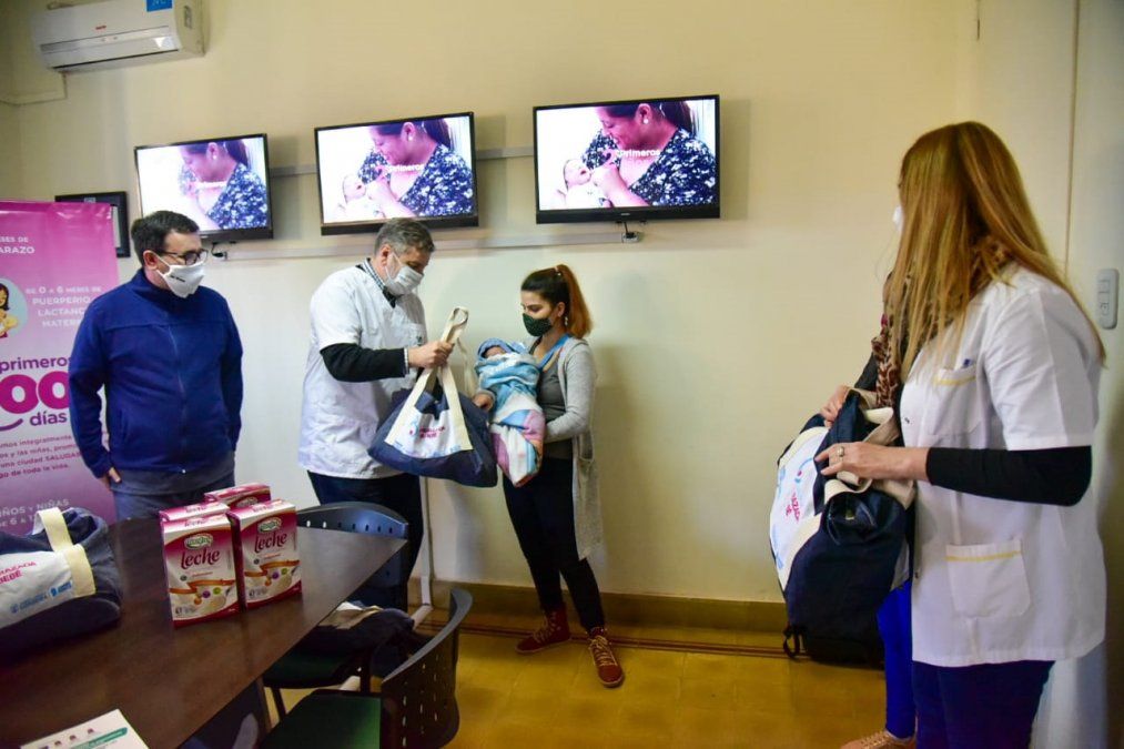 Cada bolso contiene cambiador, una muda de ropa para el bebé y camisón y pantuflas para la mamá, pañales, algodón, óleo calcáreo, gasas, toallas húmedas, pastillas anticonceptivas para la lactancia y preservativos, apuntalando la planificación familiar.