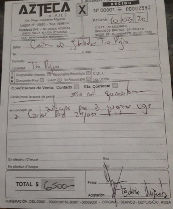En diálogo con PUNTAL VILLA MARÍA, Alcántara contó que, a raíz de lo ocurrido, se comunicaron con la empresa para solicitar la devolución del dinero. Lo hicieron porque, según contó, ya habían sacado viajes también en otras agencias que les habían reintegrado el monto “automáticamente, vía depósito en la cuenta”.