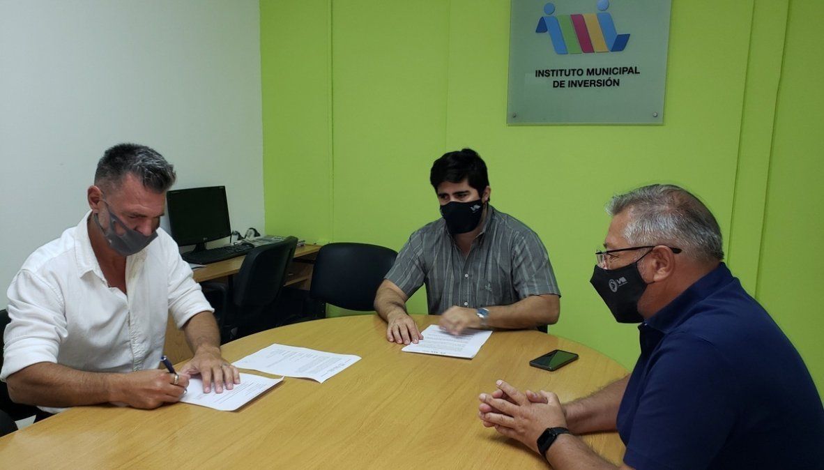 Esta mañana, el jefe de Gabinete y presidente del Instituto Municipal de Inversión (IMI), Héctor Muñoz, encabezó la firma de contrato con la empresa Constructores Asociados S.A., que resultó ganadora de la licitación pública 03/2020 para la pavimentación de las 47 viviendas en barrio Evita.