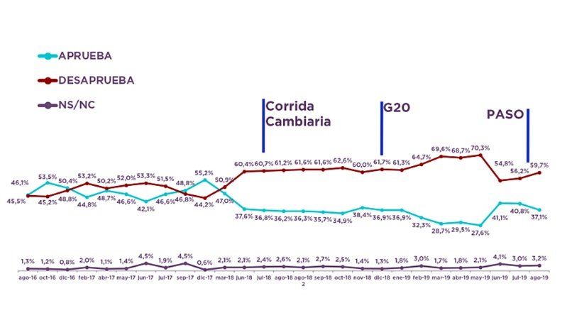 A renglón seguido, destaca que “esto también se refleja en la imagen personal del presidente Macri, que llegó al 63% de negatividad y a un 34% de positividad”. Y agrega: “En el lado del Frente de Todos, Alberto Fernández experimentó un pico en su imagen positiva, que asciende al 56% contra un 37% de negativa. Roberto Lavagna, en tanto, obtiene un 42% de positiva y un 30% de negativa”.