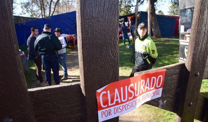 Una hora y media después de la colocación de la faja, la tranquera de ingreso al predio se encontraba abierta, y la gente recorriendo los puestos. La Policía de Córdoba actuó de oficio y no impidió que las más de 60 personas que llegaron hasta la feria ingresaran.