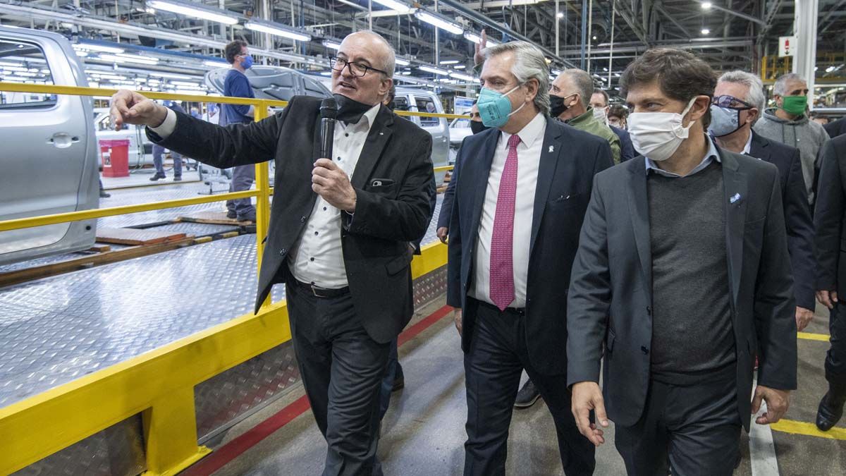 Durante la recorrida por la automotriz, el jefe de Estado se mostró con el gobernador bonaerense, Axel Kicillof, y el ministro de Desarrollo Productivo, Matías Kulfas, y afirmó: "Estamos ante un escenario desconocido. La normalidad que conocimos no existe más: va a haber otra normalidad, una normalidad que nos obliga a no abrazarnos, a no estrechar las manos, a tener distancia y a andar con barbijos hasta que la vacuna aparezca y se supere este mal momento".