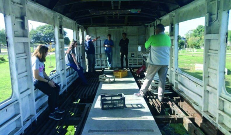 En los últimos días iniciaron las tareas para reacondicionar un vagón del ferrocarril y convertirlo en un invernadero, en Los Chaleses.