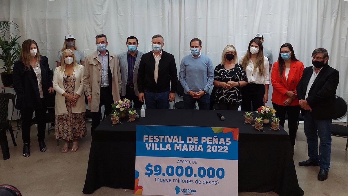En la apertura del 54º Festival Internacional de Peñas en Villa María, el Gobierno de Córdoba entregó ayer un aporte económico de nueve millones de pesos a los organizadores para contribuir a la realización del evento.
