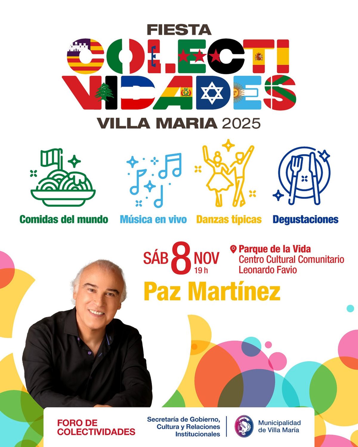 El sábado 8 de noviembre, el Parque de la Vida y el Centro Favio serán sede de una jornada con gastronomía, danzas y el cierre musical de Paz Martínez