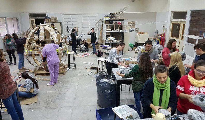 Los estudiantes de tecnicaturas y profesorados de artes visuales trabajan junto a profesores en la creación del clásico muñeco.