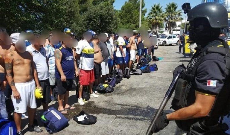 Se controlaron dos colectivos en el que se trasladaban hinchas xeneizes. El can Bjorn de la División K-9 de la Fuerza halló en diversos sectores estupefacientes. Según se informó, se incautaron 184 dosis de marihuana, distribuidas en varios envoltorios. La droga se encontraba en los pliegues de las cortinas, en la parte superior de una columna y en una toma de aire.