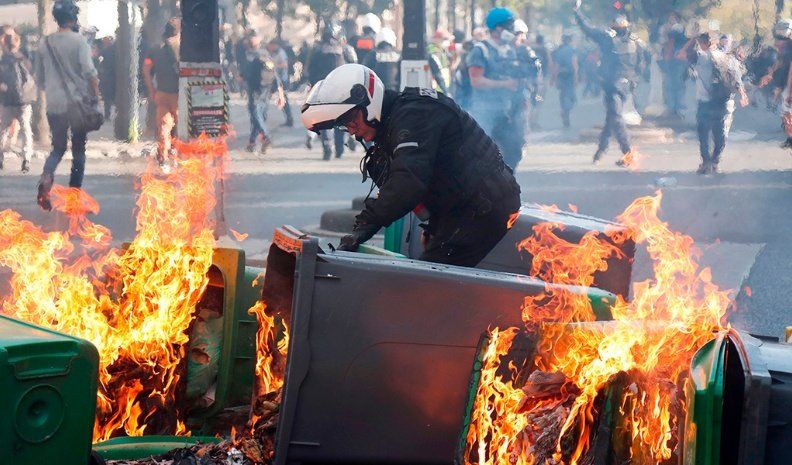En el bulevar Saint-Michel, en el Barrio Latino, militantes de extrema izquierda -algunos con la cara tapada- lanzaron objetos contra las fuerzas de seguridad y vandalizaron una sucursal bancaria.