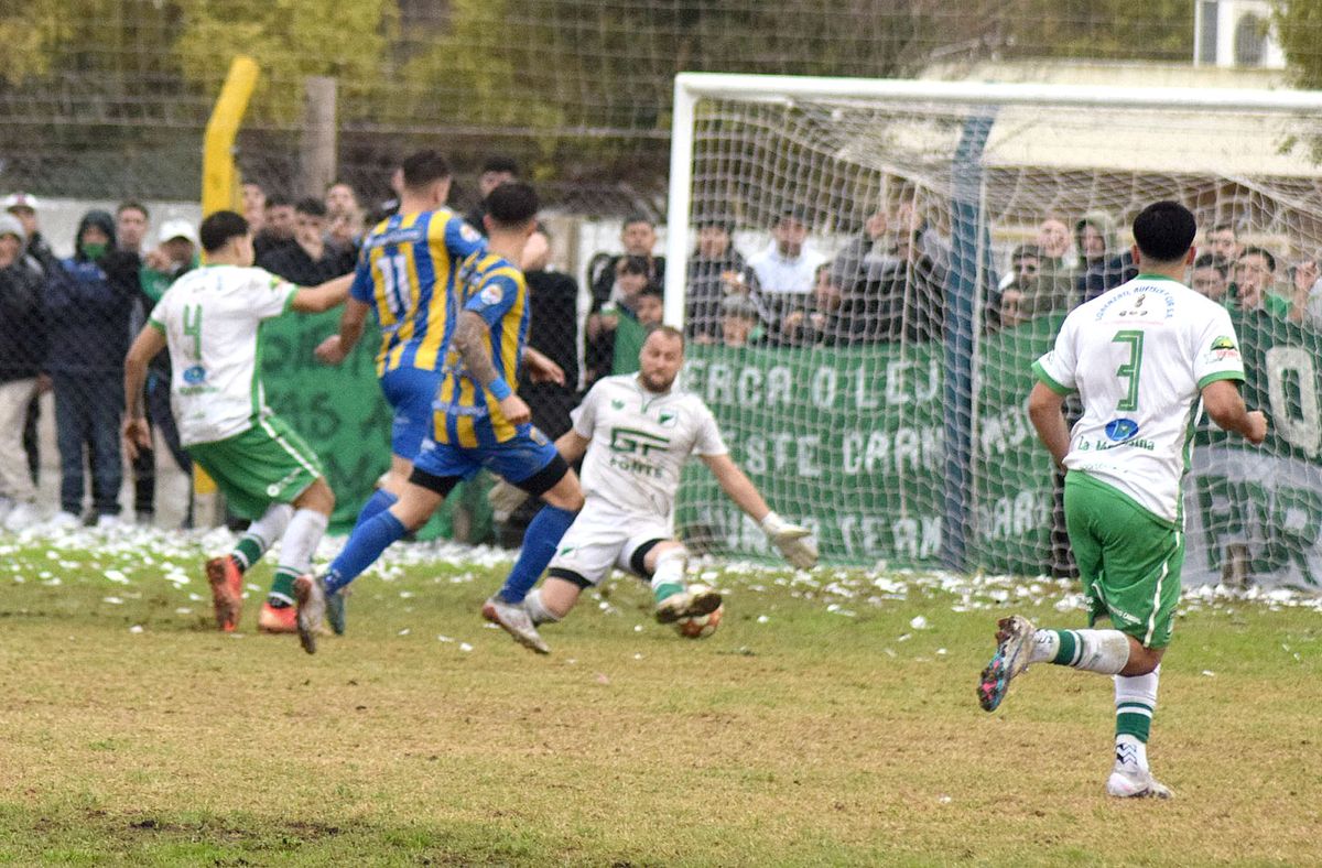 El “RG” se juramentó que lo sucedido en su cancha en el partido anterior ante Atlético Ticino no podía volver a pasarle. Y la única forma de evitarlo en el fútbol es convirtiendo más goles. Por eso a los 58’’ convirtió, cuando Pérez le disputó una pelota a Roda, que cayó pidiendo falta, mientras Valentín Cativelli batía a Berardo con sutil definición a su izquierda 2-0.