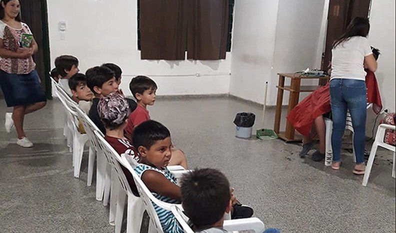 Durante estos últimos tres días, en distintos horarios, el salón de usos múltiples de la vecinal de Barrio Argentino, de General Cabrera, se convirtió en una peluquería para niños.
