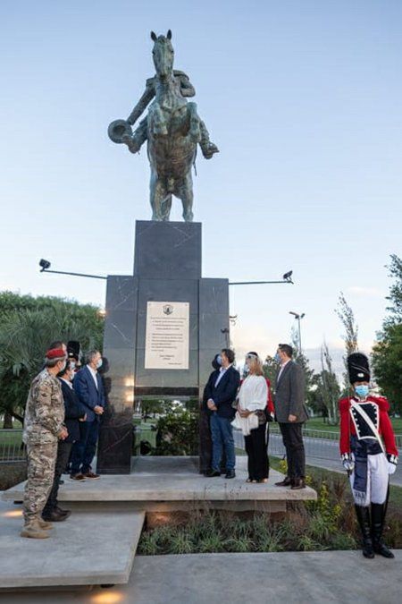 Finalmente, las autoridades presentes se dirigieron al monumento ecuestre, custodiado por los Federales de Bustos, para descubrir la placa recordatoria. De este modo, quedó inaugurada la figura en cumplimiento de 201 años desde la asunción del brigadier como dirigente de la provincia.