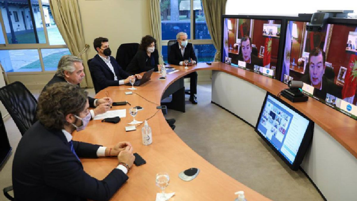 La videoconferencia se limitó a los 12 gobernadores que están con casos de contagios comunitarios y han elevado sus cifras en estos días. El gobernador de Buenos Aires, Axel Kicillof, y el jefe del gobierno porteño, Horacio Rodríguez Larreta, no estuvieron porque ya habían hablado con el jefe de Estado para definir la nueva etapa de cuarentena en el AMBA.