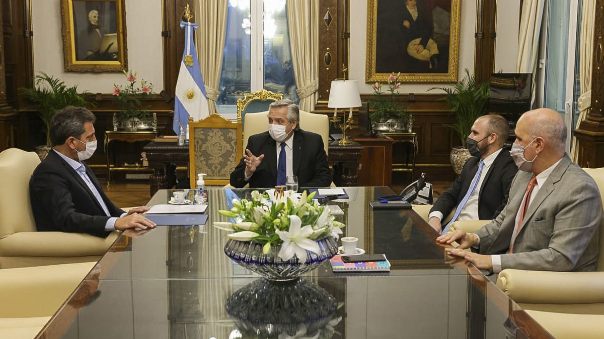 En la reunión, que se realizó en el despacho presidencial durante casi una hora, estuvieron también el ministro de Economía, Martín Guzmán; y el secretario de Hacienda, Raúl Rigo. Luego se habría sumado la titular de la AFIP, Mercedes Marcó del Pont.