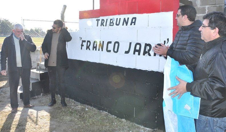 El futbolista nacido en Villa Nueva el 15 de julio de 1988 (29 años) asistió al homenaje que le tributaron los directivos de Alem, representados por su presidente Gustavo Lloret y su vicepresidente Dardo Carranza, quienes junto al intendente Natalio Graglia procedieron a otorgarle el nombre “Franco Jara” a la nueva tribuna que se edificó detrás del arco que da espaldas a la Ruta 2.