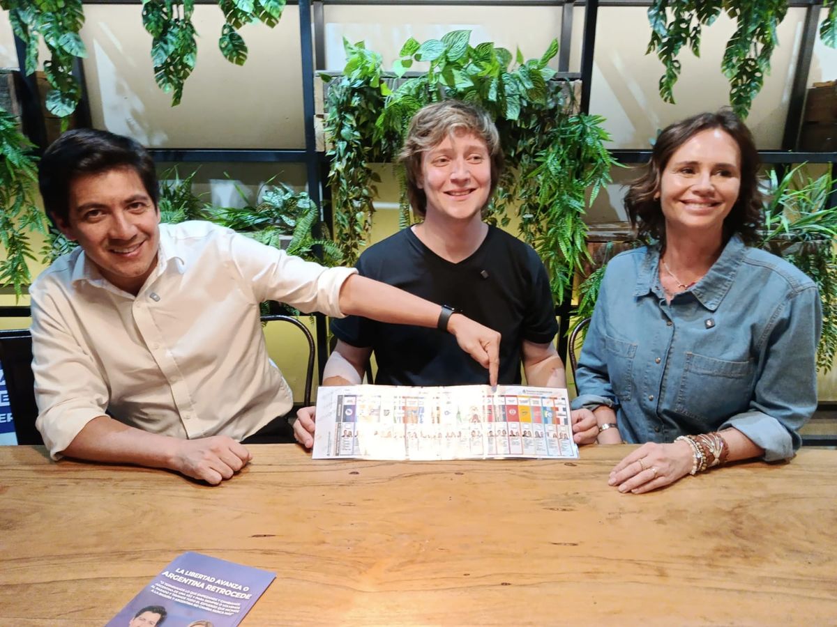 Los candidatos libertarios Gonzalo Roca y Laura Soldano y el influencer Iñaki Gutiérrez hicieron campaña en el centro de la ciudad, haciendo hincapié en cómo votar su lista en la BUP.
