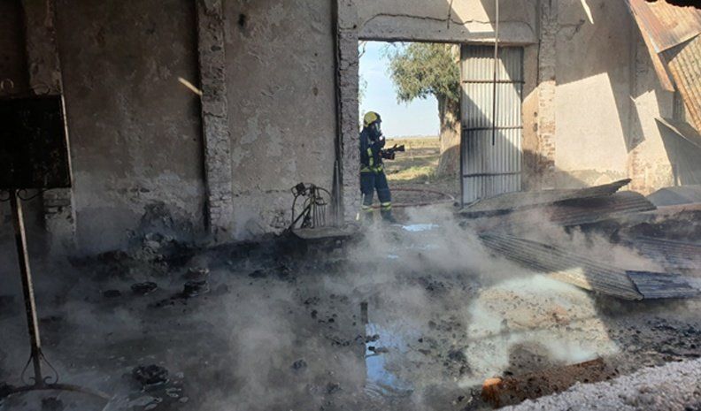 De esta manera, tres unidades con quince bomberos acudieron a apagar las llamas que se habían apoderado de un galpón ubicado en la zona rural de Ana Zumarán (fotos de arriba a la derecha) —localidad situada a casi veinte kilómetros por la ruta provincial 2—.