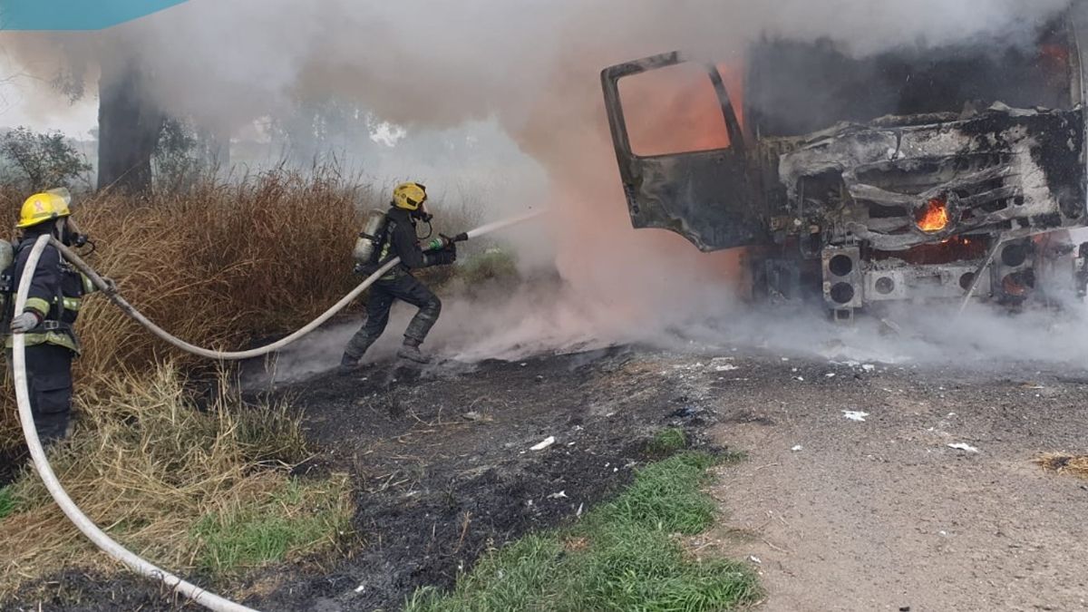 Cuando llegaron los bomberos, las llamas ya se habían apoderado de la cabina, motivo por el cual se procedió a su sofocación, a los fines de evitar que el fuego se propague hacia la parte trasera, donde se encontraba la carga del camión.
