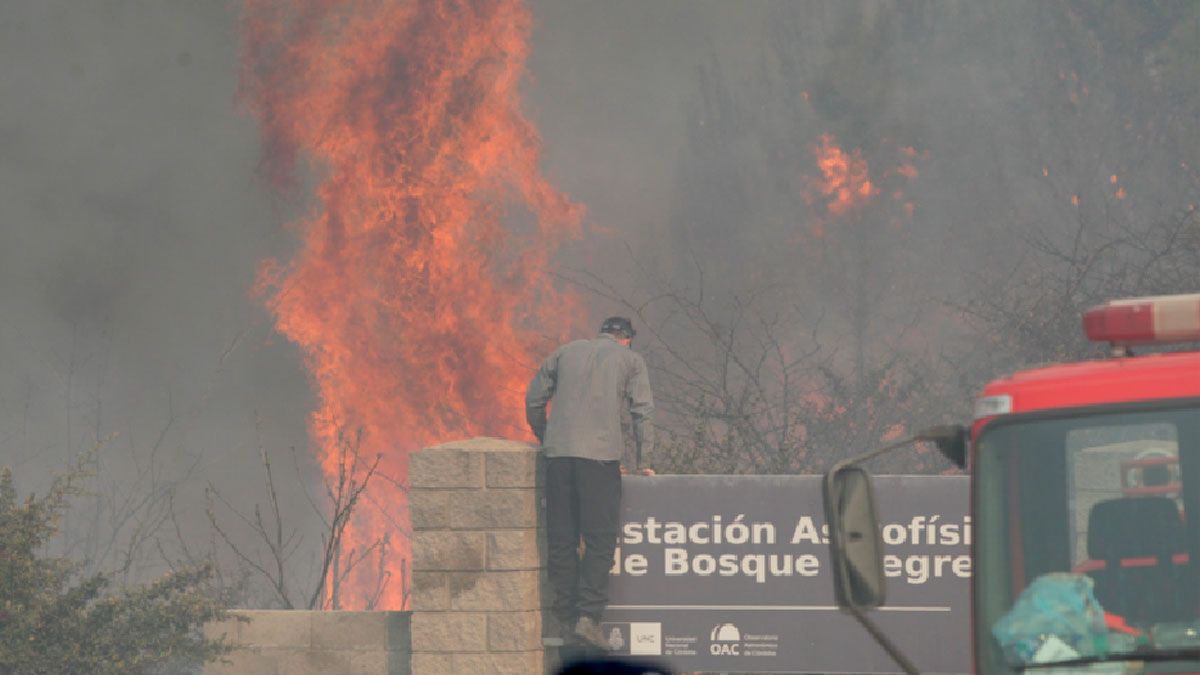 El director de Defensa Civil, Diego Concha, afirmó que para combatir el fuego en los alrededores del Observatorio Astronómico de Bosque Alegre se desplazaron 70 bomberos voluntarios.
