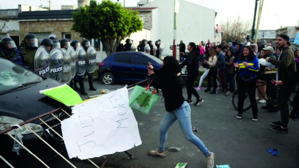 Los incidentes se produjeron frente a la comisaría de Villa Diamante, partido de Lanús, donde están detenidos dos de los sospechosos, cuando un grupo de supuestos manifestantes, quienes expresaban su repudio por la muerte de Morena, comenzaron a atacar a la policía.