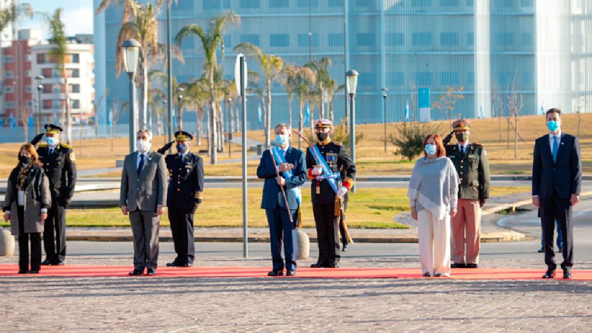 El acto se llevó a cabo en los mástiles de la explanada del Centro Cívico del Bicentenario y se siguieron las disposiciones de los protocolos sanitarios vigentes y con la guardia del Cuerpo Especial de Honores “Los Federales de Bustos”.
