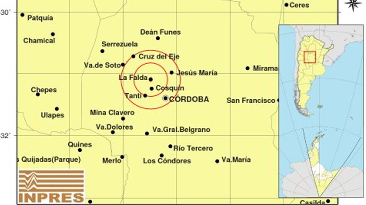 El Instituto Nacional de Prevención Sísmica (INPRES) informó que el temblor tuvo epicentro a 44 kilómetros al Noroeste de Córdoba; 63 kilómetros al Norte de Alta Gracia.
