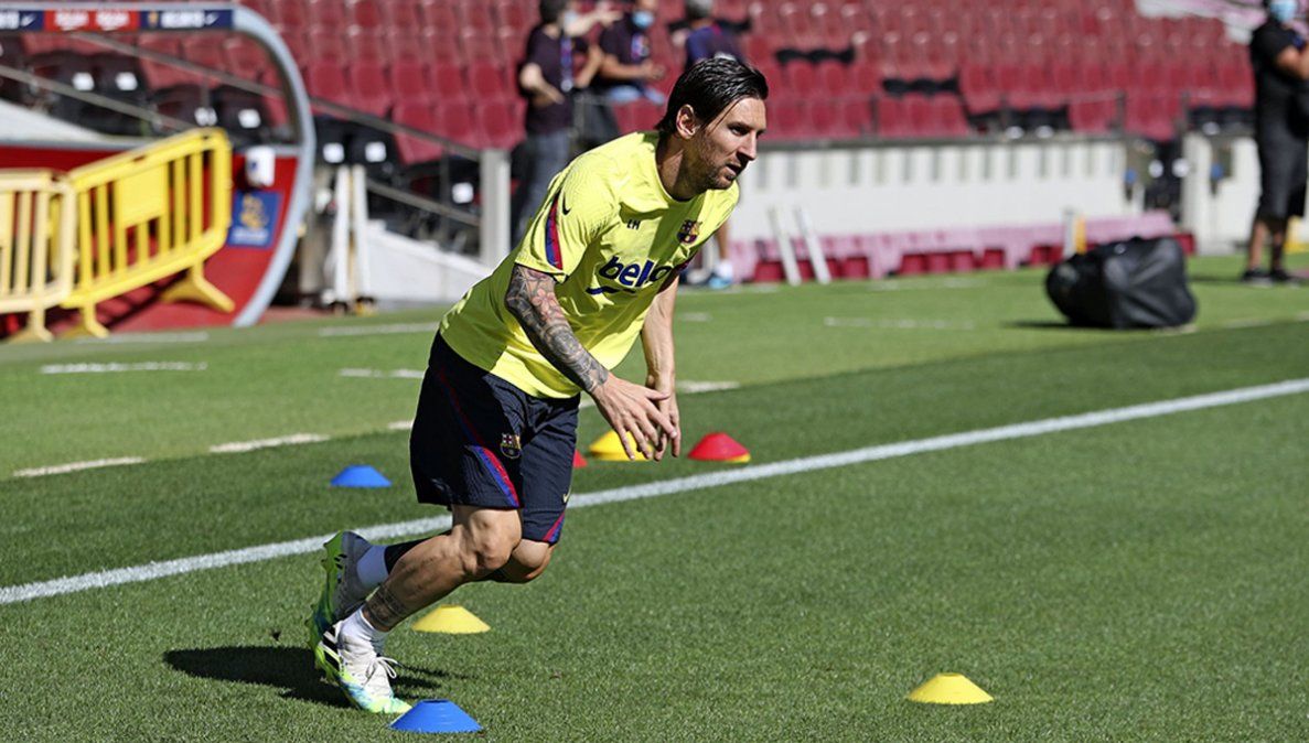 El plantel de Barcelona se entrenó sobre el césped del Camp Nou, donde Messi cumplió con una rutina personalizada por una contractura muscular que no le impedirá estar presente en la visita a Mallorca, el próximo sábado, en el reinicio de LaLiga de España.
