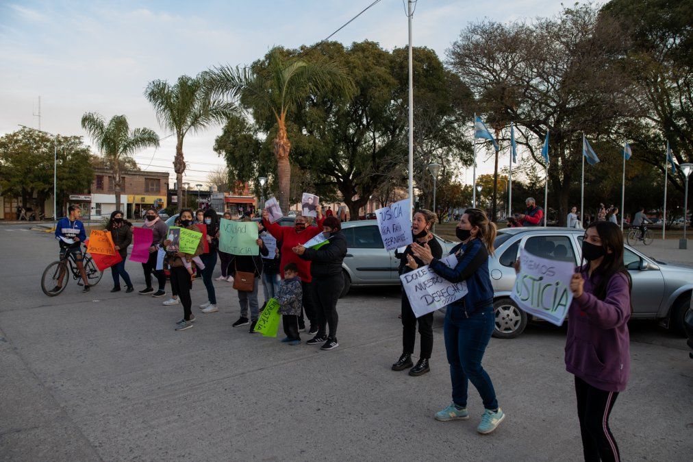 Claudia y su hermana Yamila, acompañadas por una veintena de personas, pidieron justicia al pie de la Policía.