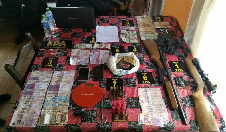 Además, personal táctico de la FPA incautó dinero en efectivo -8.675 pesos y 300 dólares-, una escopeta calibre 16, un vehículo marca Chevrolet y una motocicleta. Elemento vinculados a la venta de los estupefacientes secuestrados.
