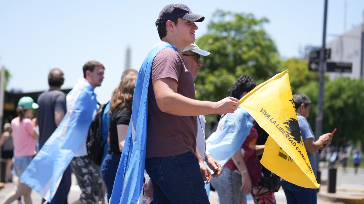 También se lucieron gorras con la inscripción "Las fuerzas del cielo", una forma de denominar en redes sociales a los militantes digitales libertarios.