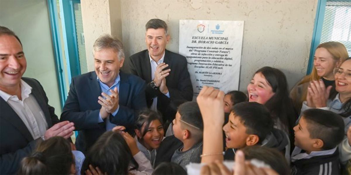 El intendente de Córdoba Martín Llaryora y el viceintendente Daniel Passerini inauguraron ayer dos nuevas aulas, una galería y un núcleo sanitario en la escuela municipal Horacio García de barrio Villa Cornú.