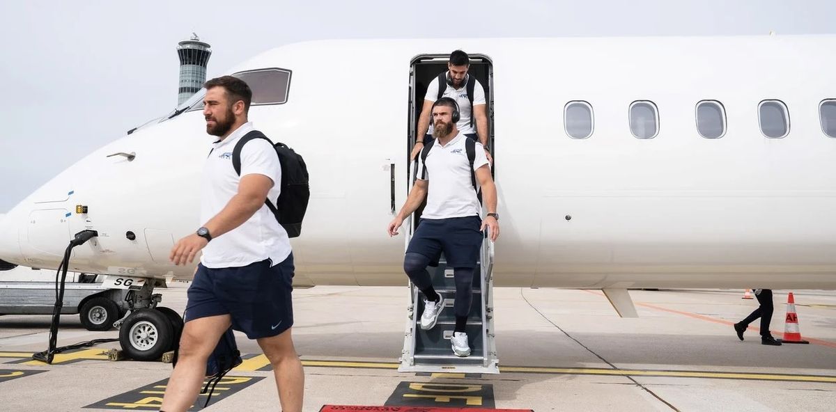 La delegación albiceleste llegó desde Marsella, donde el sábado logró un histórico triunfo sobre Gales por 29-17 y se metió entre los cuatro mejores del Mundo.